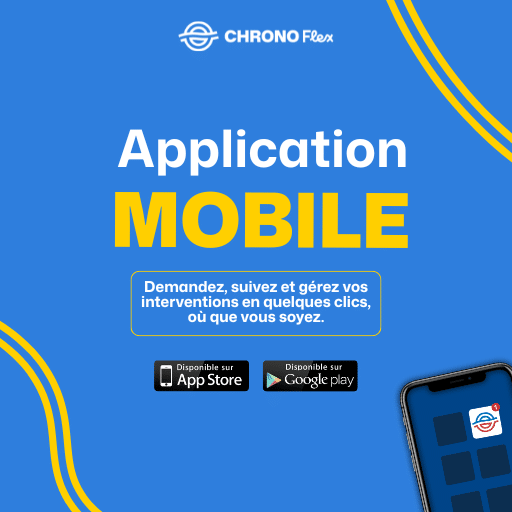 📱Téléchargez gratuitement l’application CHRONO Flex sur l’App Store ou Google Play et gardez le contrôle sur vos interventions, où que vous soyez.